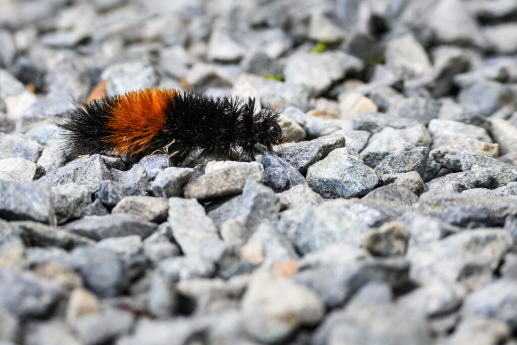 The woolly bear caterpillar starts life as a rather cute, furry little creature with a voracious appetite for leaves (thankfully, not wool coats). During the spring and summer months it eats as much and as fast as it can, in a valiant attempt to store up enough reserves to fulfill his destiny of becoming a moth. Metamorphosis apparently takes a lot of energy. Alas, the woolly bear caterpillar is not successful on his first attempt. When fall comes, he slows down and, with the onset of winter, comes to a complete stop—his heart stops, his breathing stops, and his body freezes. The caterpillar produces a kind of antifreeze that prevents his body from crystallizing as it freezes, otherwise he would freeze to death.